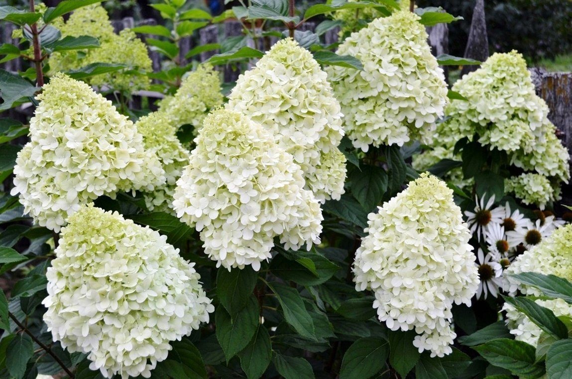 ПОЛАР БИР (МЕТЕЛ) ГОРТЕНЗИЯ 500р (куст) Высота куста до 1,5 м. Наиболее отличительной особенностью сорта являются очень плотные конические соцветия длиной до 40 см. на жестких, сильных стеблях. Цветы сразу слегка фисташковые, затем белые и кремовые и, к концу лета, появляется нежно-розовый оттенок. Соцветия распределены равномерно по всему кусту, создавая впечатление огромного цветущего букета в саду. Цветение с июля до поздней осени. Предпочитает плодородные, слегка кислые, дренированные, влажные почвы. Места - солнечные до полутенистых.