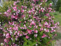 Вейгела цветущая Розеа 400р Один из самых неприхотливых сортов. Гибрид вейгелы цветущей и корейской. Раскидистый кустарник до 2 м высотой и до 2,5м шириной. Листья светло-зеленые, мелкозубчатые по краям, краснеющие к осени. Обильно цветет в июне крупными пятилепестковыми цветами всех оттенков розового с белой пестринкой. Этот сорт не подвержен заболеваниям.Розеа обладает повышенной морозостойкостью и зимует лучше многих других разновидностей, выдерживает температуру до –30°C.